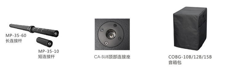 CA 系列音柱产品配套了三个紧凑型的超低频系统,CA-10SUB,CA-12SUB和CA-15SUB,都是采用了长冲程的橡胶边低音单元。如果你需要紧凑轻量的低频效果,CA-10SUB将是你的第一个选择,尺寸仅有 宽343mm×高500 mm×深460mm ,摆放灵活,运输方便;如果你需要更强劲的低频效果,或者满足更多观众更大面积的场合应用要求,CA-12SUB和CA-15SUB将会带来震撼的低频效...